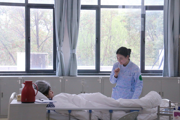 “健康养老照护赛项” 团队由21级学生何沁怡和指导老师汪峥组成团队。选手在居家、社区和医养机构等养老场景,通过评估、计划、实施和反思等程序,运用新型智慧康养设备和照护措施,为老年人提供专业、规范的照护服务,使其照护需求得到满足,促进其身心健康和疾病康复,提高生命质量。