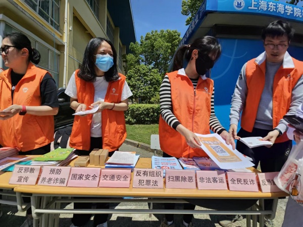 4月24日中午,一场别开生面的安全教育宣传活动在上海东海职业技术学院的体育馆门口展开。此次活动由吴泾镇平安办与学校后勤保卫处共同策划组织,通过一系列丰富多彩的活动形式,提高全体师生的安全防范意识和法律素养,共同为校园安全稳定贡献力量。