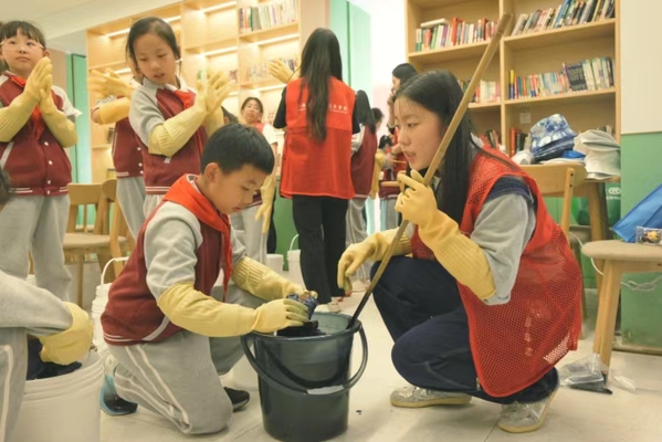 4月26日,我校扎染社、绘本阅读社的12名同学在校团委钟晓滢老师的带领下,走进吴泾满天星社区书屋,为华东师范大学闵行永德实验小学的小朋友们带来了一场别开生面的读书体验活动。