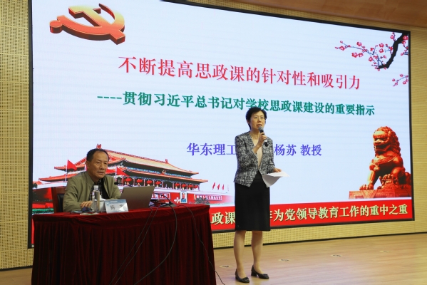 杨苏以《不断提高思政课的针对性和吸引力——贯彻习近平总书记对学校思政课建设的重要指示》为题进行辅导报告。他重点解读了习近平总书记对学校思政课建设的重要指示精神,并指出新时代我国教育发展和教师能力面临的全新挑战,结合自己长期从事思政课教学的实际案例与成效,提出提高思政课的针对性和吸引力的方法与途径。他强调,对于课堂理论学习,要努力做到激发学习热情,激活课堂氛围,激励学生成才。教师的理论讲授应当与学生的社会调研课题紧密结合,使学生在学习中感受到“理论深刻、实践生动、思想升华”,从而不断提升对思政课教学的满意度,实现“真心喜爱、终身受益”。他还分享了自己在师资队伍建设方面的心得与感想。