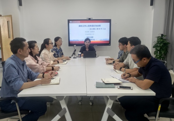 5月16日下午,机关三支部在大学生发展中心会议室召开了党纪警示教育学习会,特邀华东师范大学张颖慧副教授,作题为“高校工作人员失范行为分析”讲座,机关三支部书记岳宝华主持会议,全体党员参加会议。
