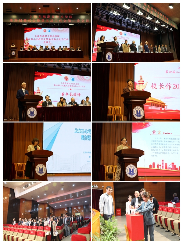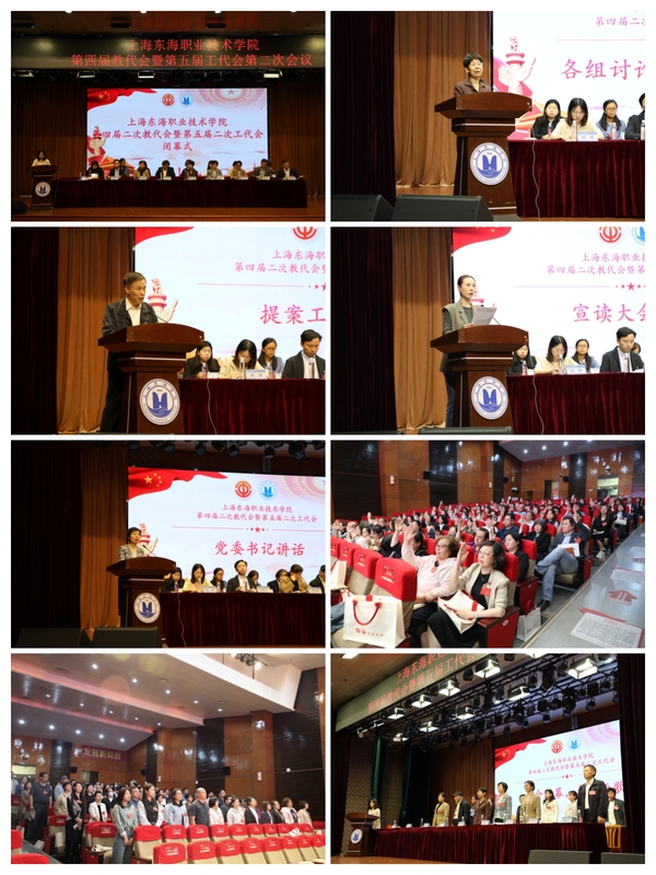 又讯 5月17日下午,东海学院第四届二次教代会暨第五届二次工代会闭幕式召开。会上,校长贺瑛作各代表团讨论情况的汇总说明,党政办主任顾文业汇报了第四届一次教代会暨第五届一次工代会的提案办理情况,以及本次教代会、工代会的提案收集情况。代表们审议并表决通过了《上海东海职业技术学院校长工作报告》《上海东海职业技术学院工会工作报告》《上海东海职业技术学院财务报告》。