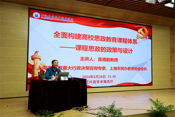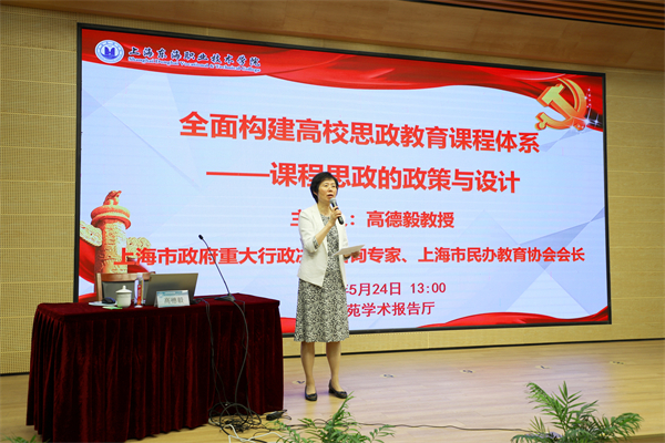 为更好地推动学校课程思政高质量发展,全面提高人才培养质量,改进和加强学校思想政治工作,更好地落实立德树人根本任务,5月24日下午,学校特邀上海市政府重大行政决策咨询专家、上海市民办教育协会会长高德毅教授到校作课程思政专题辅导报告,党委书记曹蓉蓉主持报告会。
