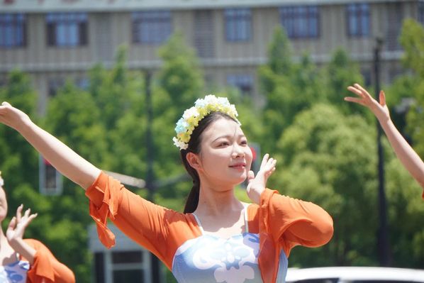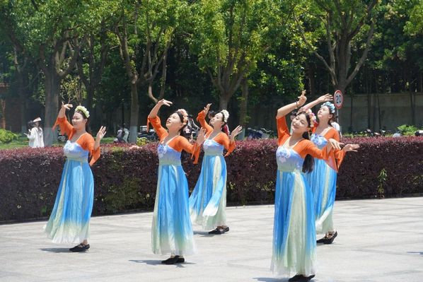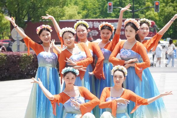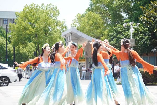 活动在大眼睛广场上举行,蓝天白云下,随着歌曲《芒种》的响起,一群身着传统服装的学生出现在人群中并翩翩起舞。他们的舞蹈动作既有古典舞蹈的优雅,又融入了现代街舞的活力,独特的编排和精准的舞技立刻吸引了众多师生驻足观看。