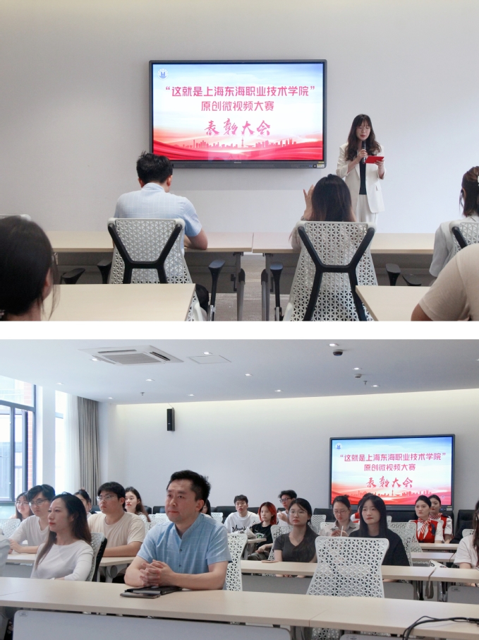 6月13日,由招生就业处主办的“这就是上海东海职业技术学院”原创微视频大赛在“匠兴苑”会议中心举行颁奖典礼。招生就业处、各二级学院相关师生参加典礼,招生就业处行政宣传负责人孟倩主持。