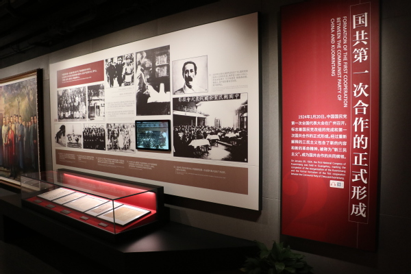 中共四大纪念馆有一个主展厅、三个副展厅,完整再现了1925年中共四大召开的生动场景,详细描述了从中共四大筹备到召开的过程以及大会的历史贡献。展陈将场景与展览内容有机融合,让观众能清楚地了解四大召开的全过程。纪念馆主展厅为中共四大史料陈列,分为序厅“工农联盟”、第一部分“时局与形势”、第二部分“筹备与召开”、第三部分“发展与高潮”及尾厅。