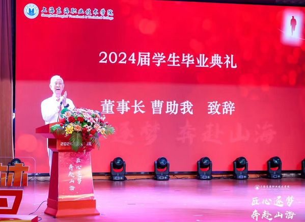 董事长曹助我代表董事会致辞。东海学院已建校三十一周年,在师生共同努力下,在各级各类大赛中展示青春风采,收获累累硕果,取得了骄人的成绩。希望全体2024届毕业生,以终身学习为追求,以勤奋态度为秘诀,以坚韧毅力为勇气,以合作共赢为力量,以感恩的心为滋养,争当新时代工匠。教育学院学前217班代青依仲作为毕业生代表为母校献唱《绒花》,感恩学校领导、老师们的栽培,祝福东海学子们绽放更绚烂的青春之花;经管学院关务214班董彦雯的父亲作为毕业生家长代表嘱咐毕业生铭记东海培养之恩,勇做时代新青年;航空学院民航232班邵诗瑶表达了对师兄师姐们的感谢,希望能充分发挥朋辈力量做好东海青年。马克思主义学院院长龙燕作为教师代表发言,她以临别三言,告诫青年应善于把握机遇,做不负青春、不负韶华的新时代青年。