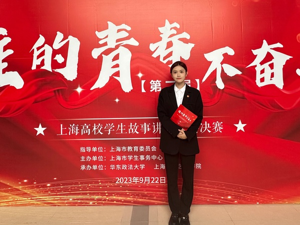 她是一个对中华优秀传统文化有着执着热爱的大学生。她参加了第五届中华经典诵写讲大赛“诵读中国”“诗教中国”两个赛项,在与上海市众多本科、高职院校的比拼中,她凭借自身的特色和优势,两个赛项均获得上海市“一等奖”。