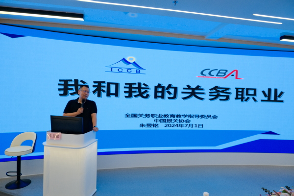 随后开展的关务职业校园行活动由国际物流系主任高静主持。中国报关协会职教委副秘书长朱昱铭应邀作“关务职业校园行”主题讲座,他以在关务行业发展的亲身经历点燃了关务专业学生的职业兴趣,激励他们投身关务行业,做好职业发展规划,拓展视野和格局,立志服务于“一带一路”及对外贸易发展。