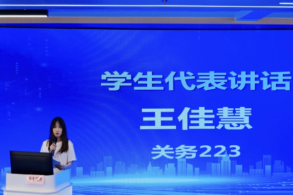 校长贺瑛发表致辞,对参加签约仪式的各位来宾表示热烈的欢迎。她肯定了关务专业已取得的优异成绩,激励关务专业向国家级双高专业发起冲刺,对此次东海经管学院与兴亚报关公司正式签约建立定向现代学徒制合作关系表示祝贺,并希望双方深化合作,协同育人,共同培养新时代所需的国际化、数智化关务管理人才。
