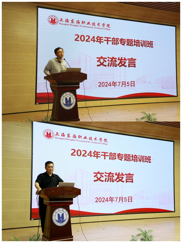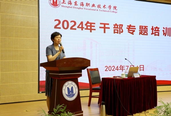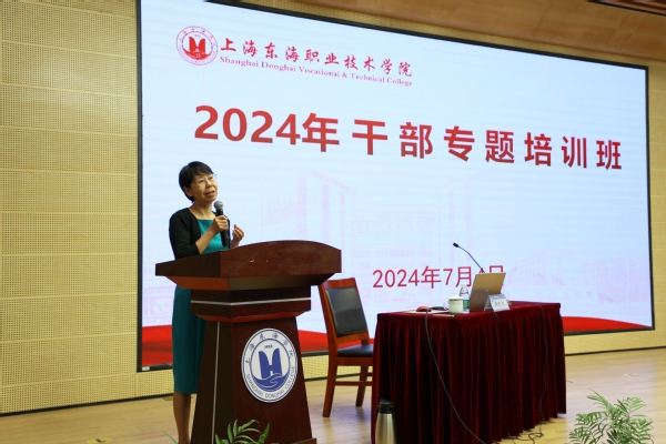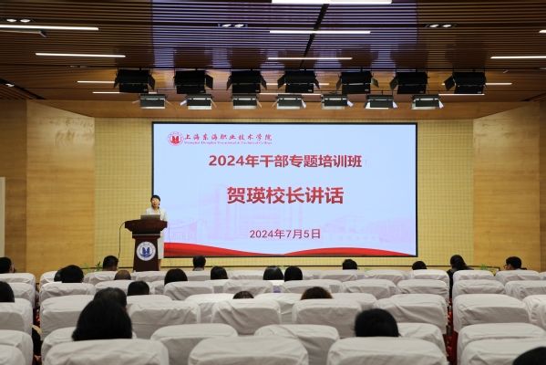 上海东海职业技术学院2024年干部专题培训班于7月4日-5日在匠兴苑学术报告厅举办。校长贺瑛主持开班仪式,并简要介绍了此次培训班召开的背景和主要学习内容。