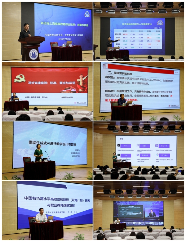 此次专题培训班还特邀市教委研究室主任、综合办主任林炊利,市委党校社会学教研部副主任贺小林教授,上海工艺美术职业学院党委书记许涛等专家学者,分别聚焦“新征程上海高等教育综合改革形势与任务”“特色案例撰写能力提升”“‘双高’计划建设专题”等内容作专题辅导报告。