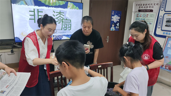 710日,我校学生工作部钟晓滢、焦庆超、倪晨三位老师为万科社区的小朋友们带来一场以“体悟漆扇之美,传承非遗技艺”为主题的社区公开课。