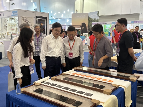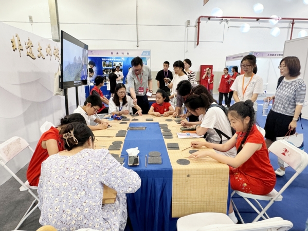 博览会上,东海学院艺术设计学院与传媒学院的学生作品成为了一道亮丽的风景线,来往观众络绎不绝,非物质文化遗产(非遗)传承石刻艺术更是吸引了孩子们的眼光,大家在老师的指导下认真地完成作品。
