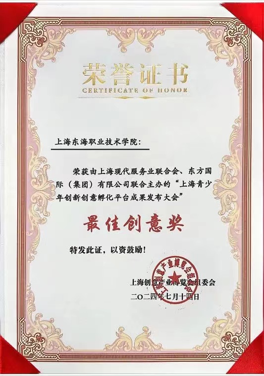 参与此次博览会,不仅是对我校学生才华的一次集中展示,更是学校社会责任的体现,上海东海职业技术学院也获得了由上海现代服务业联合会、东方国际(集团)有限公司联合主办的“上海青少年创新创意孵化平台成果发布大会”最佳创意奖。通过参展,学校不仅能将自身的教育理念、教学方法和成果展示给外界,还为学生提供一个展示才华、锻炼能力的平台。对于学校教育教学质量的提升、学生的全面发展以及教育理念和成果的推广与进一步的拓展和深化具有重要的意义。同时激发了更多年轻人对传统文化的兴趣,让非遗之光更加璀璨,有力地促进了与其他院校及社会各界在文化教育领域的交流与合作,共同为提升青少年美育素养、增强民族文化自信贡献力量。学校将继续秉承“品质+能力”的人才培养理念,培养更多优秀的创意产业人才,为推动长三角一体化建设作出更大的贡献。(通讯员 刘会娟)