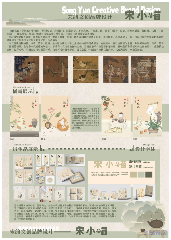 曹晓璐同学的《宋小喵文创品牌设计》和陈姝怡同学的《一针一线 画卷再现》均荣获特金奖。这两部作品以其深邃的文化内涵、创新的设计理念和精湛的工艺水平,赢得了评委和观众的一致好评陆星烨同学的《解鸭梨解压馆视觉形象设计》、熊双艳同学的《徽味无穷》荣获银奖,其设计巧妙的创意构思与视觉艺术相结合,为观众带来全新的视觉体验。贾健平同学的作品《背对世界》、徐婉婷同学的《瑶台银阙—苗族银饰非遗展厅》、林思含同学的《予你 FOR YOU》、朱欣怡同学的《反走私海报》以及徐恒同学的《泡泡奇异集市品牌形象设计》等作品均荣获铜奖,这些作品或以其独特的视角和创意展现了巧品牌的深厚文化内涵、或以独特的视觉语言深刻挖掘了民族文化的精髓,为传统手工艺的传承与创新提供了新的思路。