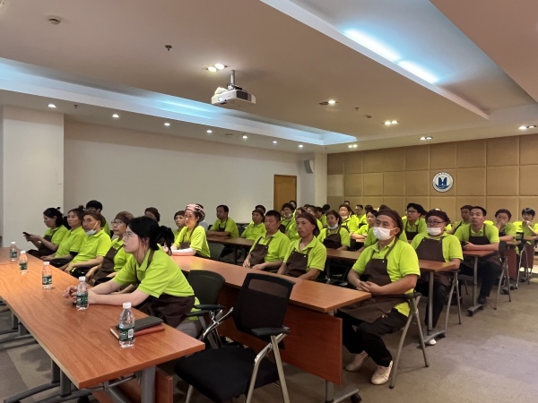 总务处处长刘强详细讲解了“T实务的要求和食品安全的重要性。从食材的采购源头到储存、加工、烹饪的各个环节,每一个细节都必须严格谨慎,还特意强调了食品操作安全规范,包括厨房设备的使用和清洁、食品加工过程中的卫生要求、餐具的消毒流程等等。参会的食堂工作人员们认真聆听,记录下关键要点。