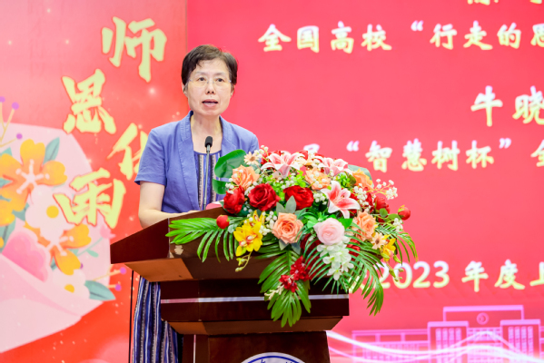2024年我心目中的好老师代表王腼、“东方英才”奖获得者郑梅青分别在大会上发言。