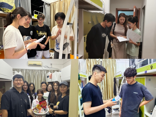 傍晚时分,风雨转微渐停,辅导员们深入新生寝室,了解他们的实际情况。他们特别关注新生中午吃饭是否有困难?有什么需要帮助的?刚入校报到就遇到台风是否有焦虑情绪?同宿舍的舍友是否还相互适应......通过询问和耐心倾听,鼓励他们相互关心、相互帮助,共战台风。