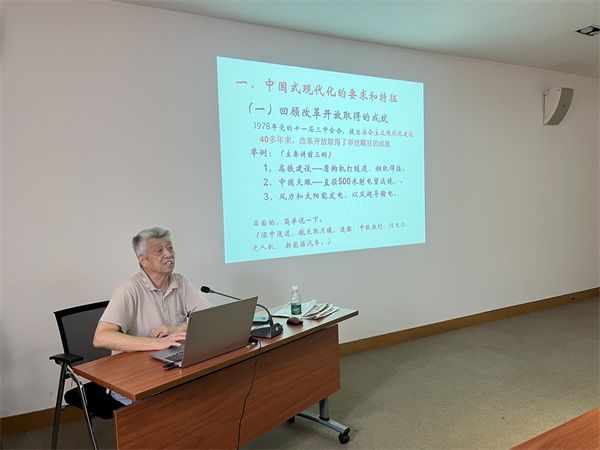 作为2024年新入职教工培训系列讲座之一,本次邀请了校关工委成员之一周大恂老师主讲。周大恂以“中国式现代化与高职教育”为主题,用“高铁建设”、“中国天眼”、风力和太阳能发电以及超导输电等事例,回顾了改革开放以来取得的成就,并向与会教师们分享了党的二十届三中全会精神学习体会。