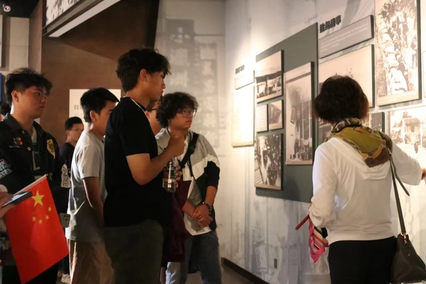 升旗仪式结束后,学校组织留校学生代表参观上海淞沪抗战纪念馆。同学们认真观看了展区陈列的大量珍贵的影像资料、图片、实物等文物。看着挂满抗战老兵黑白特写的照片墙,隔着玻璃触摸着一件件文物,同学们仿佛穿越到了那个峥嵘岁月,感受到了前辈们的坚韧与不屈。