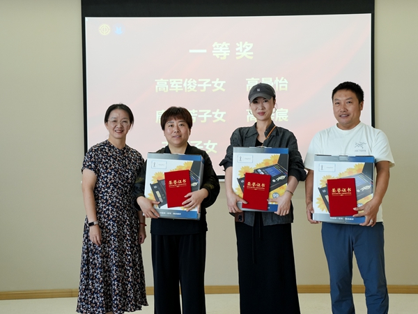 在收到老师子女们的作品后,校工会还邀请到艺术设计专业副教授、工会委员黄海担任校内大赛评审专家,分别评选出特等奖1名,一等奖3名,二等奖5名,三等奖8名,并在本次颁奖会上对这些获奖作品予以表彰和奖励。与此同时,每位参赛的教职工子女也均获得了由花王绘画大赛主办方花王集团提供的精美礼品。
