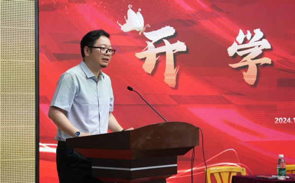 传媒学院专职教师陈华作为教师代表进行发言,陈华老师有着30年的影视动画行业的工作经历,作为《大耳朵图图》系列动画片的主创人员之一,拥有丰富的行业经验,对新生也明确提出了更高的专业要求,并希望贯通班的同学们,以身作则、当好标杆,努力成为优秀的专业人才。