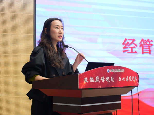 党委副书记王玉在讲话中代表校领导向在2024年世界职业院校技能大赛总决赛中斩获佳绩的同学们,表示最衷心地祝贺。她指出世界职业院校技能大赛是一个高手如云的竞技舞台,能够在这样的比赛中获得荣誉,是同学们用无数的汗水、泪水以及对梦想的执着追求换来的。她强调了“坚持”在备赛过程中的重要性,认为正是坚持的力量,让同学们在面对重重困难时依然能够坚定前行。同时,她希望同学们能够以此次获奖为新的起点,继续努力,不断提升自己的专业技能和综合素养。