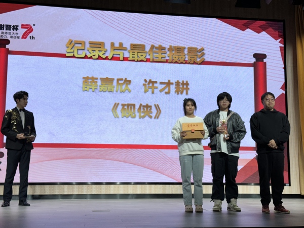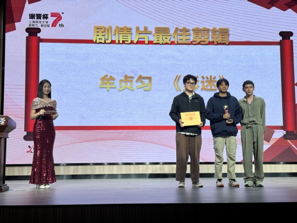 日前,第七届“谢晋杯”大学生影视传媒作品联展颁奖典礼在上海师范大学徐汇校区盛大举行,传媒学院学生荣获多项殊荣。其中,许才耕执导的《我和我的家乡》纪录片获得“最佳导演”;薛嘉欣、许才耕荣获纪录片《砚侠》“最佳摄影”;秦静陶摄制组制作的《镂月裁云》荣获“优秀非遗传承主题作品”;李炎培参与制作的故事片《影迷》荣获“剧情片最佳剪辑”。