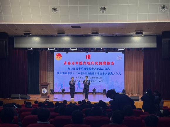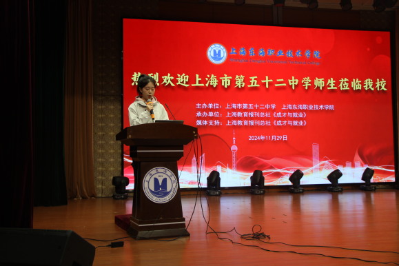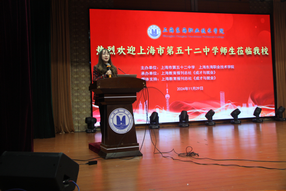 11月29日,上海市第五十二中学2025届毕业班师生来我校参观交流并举办18岁成人仪式。招生就业处、各学院相关人员参加交流会。招生办行政宣传科孟倩主持会议。