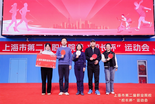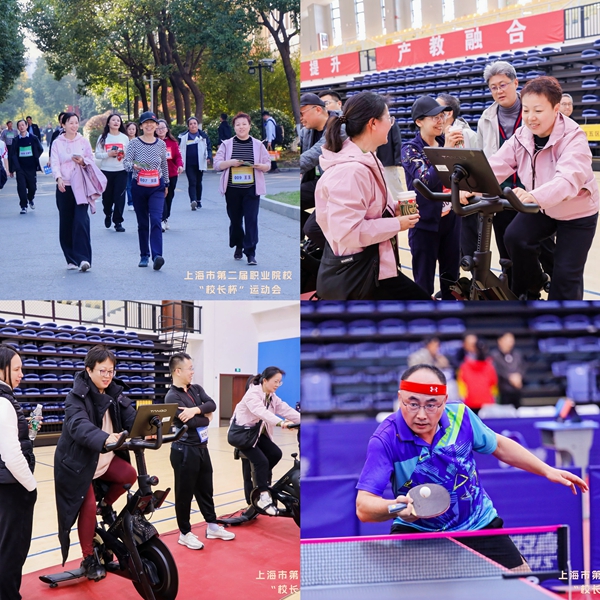 为贯彻落实习近平总书记提出的“大力发展以人民为中心的体育事业,推动全民健身和全民健康深度融合,向着建设体育强国、健康中国的目标不断迈进”的精神,体现职业院校领导班子“团结、凝聚、拼搏”的精神,创设校领导带头推进校园“阳光体育”活动机制,搭建职业院校校领导学习、交流、互动的平台,巩固职业院校蓬勃发展的成果,11月30日至12月1日,由上海市中等专业学校体育协会、中国银行上海市分行主办,上海中侨职业技术大学承办的上海市第二届职业院校“校长杯”系列比赛在中侨职业技术大学开赛。上海市40余所职业院校200余人参加本次赛事。本次比赛包含健步走、TANGO音乐飞轮、智力运动、乒乓球赛四个项目。我校校长贺瑛,党委副书记王玉,副校长、工会主席郁萍,校长助理张居阳和后勤保卫处科长邓友君组成东海学院代表队参加本次比赛。