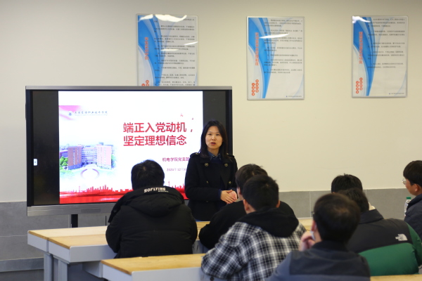 为进一步做好学生的思想政治工作、学生党员发展工作,12月6日中午在匠兴苑C204,机电学院党支部书记沈艳为2024级新生代表讲“端正入党动机,坚定理想信念”主题党课。