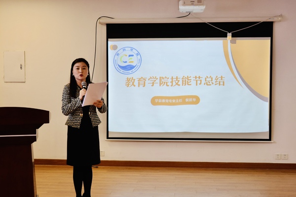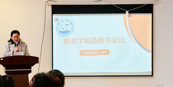 教育学院学前教育专业主任侯延华对本次技能节进行全面总结,她从教师准备方案,到学生积极备赛,到专家团队支持,充分肯定了师生们的辛勤付出和取得的成绩。