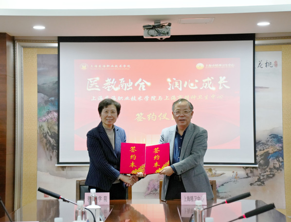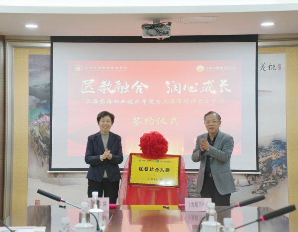 为进一步贯彻落实教育部《全面加强和改进新时代学生心理健康工作专项行动计划(2023—2025年)》,精进心理健康教育,提高学生心理健康水平,12月10日上午,东海学院与上海市精神卫生中心“医教融合 • 润心成长”签约揭牌共建仪式在东海学院举行。上海市精神卫生中心党委副书记蔡军、院长办公室主任谢飞、综合事务部办公室主任范鑫、医务部副主任谢帆、门诊部副主任孙海明受邀出席仪式。我校党委书记曹蓉蓉、党政办公室主任李建伟、学工部部长岳宝华、副部长王莉娜及心理健康教育与咨询中心两位专职心理咨询师参加本次仪式。
