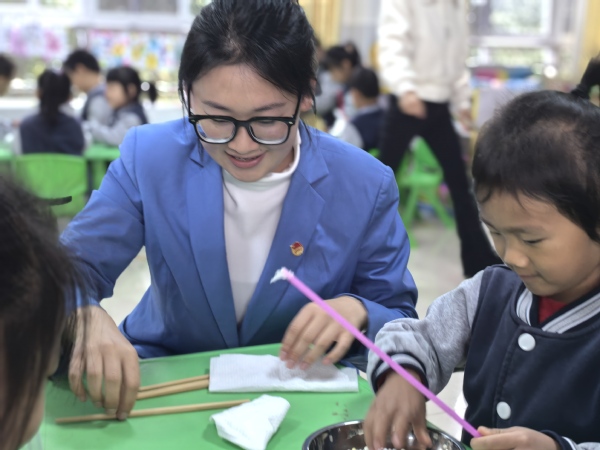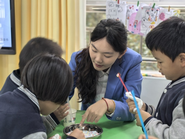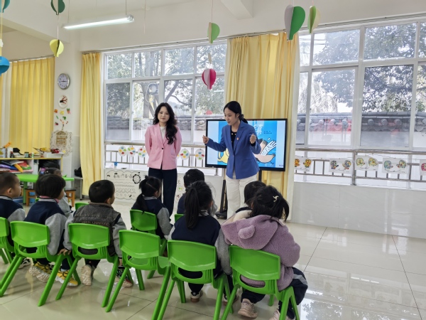 捐赠仪式后,教育学院的学生们分组开展了丰富多彩的教学活动。小班的孩子们在迮诗琪和叶雨洁两位同学的带领下,进行了故事活动“跑跑镇”,通过生动的故事讲述,激发了孩子们的想象力和语言表达能力。中班的孩子们在金璐和万婧婧两位同学的引导下,参与了语言活动“我长大了吗?”,通过互动讨论,让孩子们思考成长的意义,增强了自我认知。大班的孩子们则在曹毓凡和陈瑾两位同学的科学活动“神奇的静电”中,通过实验操作,探索了科学的奥秘,激发了孩子们科学探索的兴趣。
