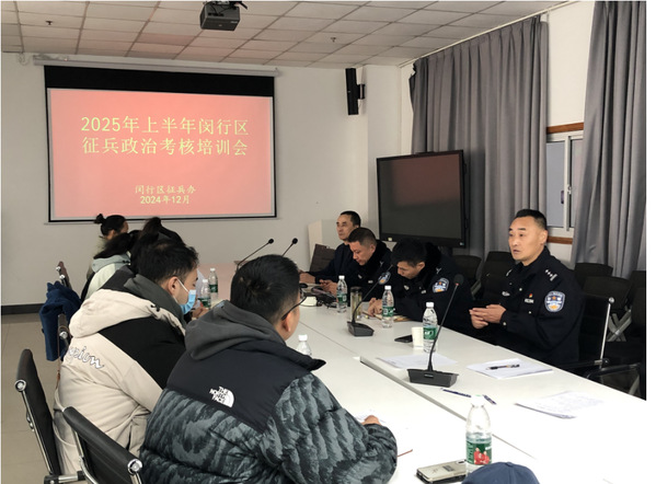 为确保征兵工作顺利完成,严把政考质量关,12月17日,校武装部在大学生发展中心会议室召开2025年春季征兵政考工作培训会,闵行区政考组张晓刚教导员,谢咏斌警官,孟文斌警官,校武装部部长岳宝华、副部长蒋久泉,各二级学院负责武装工作辅导员参会。