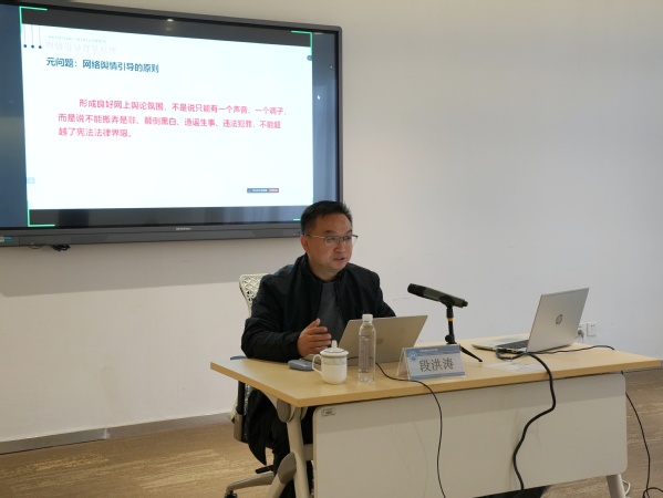 12月24日下午,上海教育系统网络文化发展研究中心副主任段洪涛应邀到校作主题讲座,来自学校相关职能部(处)、二级学院的网评员们聆听了讲座。