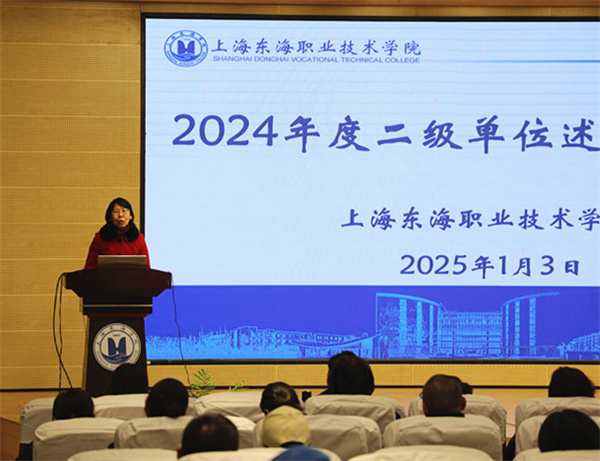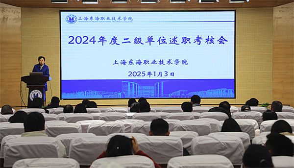 为全面总结学校2024年度各二级单位工作完成情况,推进学校高质量发展。1月3日,上海东海职业技术学院2024年度二级单位述职考核会在匠兴苑学术报告厅召开。党委书记曹蓉蓉主持会议,校党政领导班子成员、全体中层干部、教职工代表参加会议。