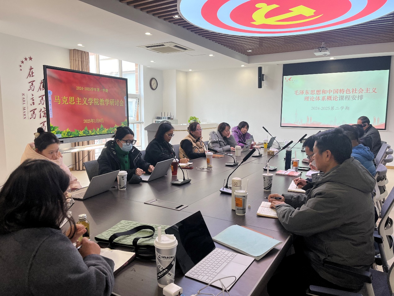 1月8-14日,马克思主义学院召开期末教学工作研讨会,旨在总结本学期教学工作经验,规划下学期教育教学工作重点,推动思政课教学质量和实践教学水平的全面提升。会议由学院院长龙燕主持,各门课程负责人及具体项目负责人参加了会议。