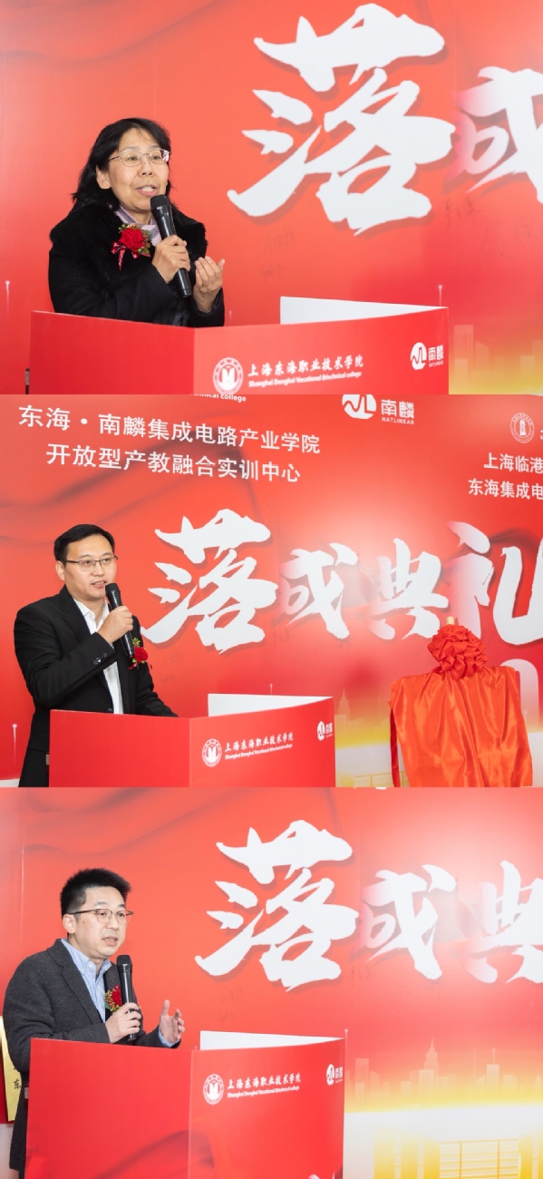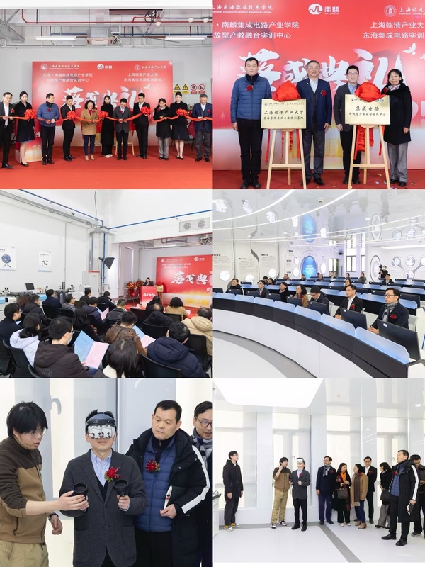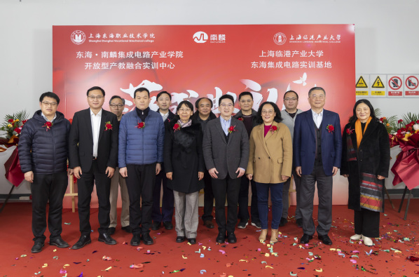 1月18日下午,东海·南麟集成电路产业学院开放型产教融合实践中心暨上海临港产业大学东海集成电路实训中心落成典礼在上海东海职业技术学院隆重举行。上海市教育委员会二级巡视员、职教处处长马建超、东海学院校长贺瑛为东海·南麟集成电路开放型产教融合实践中心揭牌,上海市教育委员会教育技术装备中心副主任赵晓伟、上海临港产业大学校长王春华为上海临港产业大学东海集成电路实训中心揭牌。