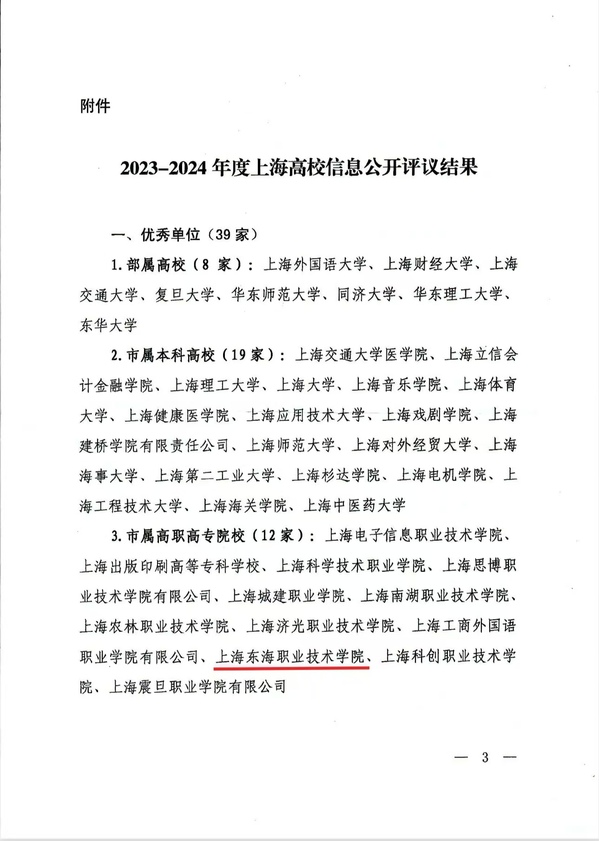 近日,上海市教育委员会公布了2023—2024年度上海高校信息公开评议工作结果(沪教委办〔2025〕8号),我校获评信息公开工作“优秀单位”。