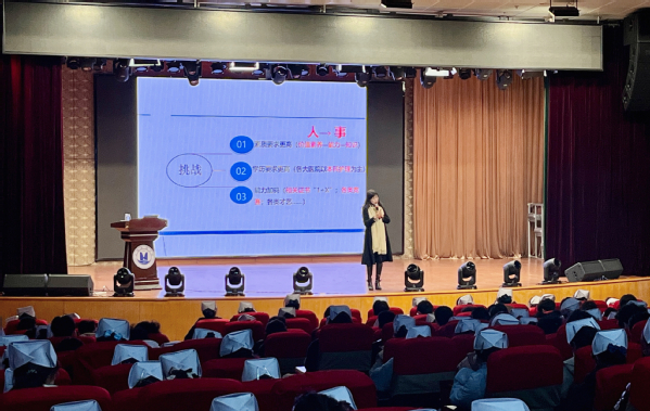 大会上,张美琴分析了新时代AI发展和人口老龄化加剧背景下,护理行业的发展趋势及机遇,也对其带来的护理人员素质要求、学历要求等挑战进行了全面梳理和深入剖析,并提出有针对性的改进建议。针对2022级学生,张美琴围绕“专业素养职业规划发展与就业”主题展开,提醒学生在迈向毕业的关键阶段,更要加强护理专业素养,精进综合能力,同时为就业方向提供多元化的建议。对于即将进入临床的2023级学生,张美琴则从“专业素养与临床行业需求”方面进行讲述,强调了专业素养、人文关怀、综合能力等在护理实践中的重要性,鼓励学生们注重日常职业态度的养成,持续提升自我。
