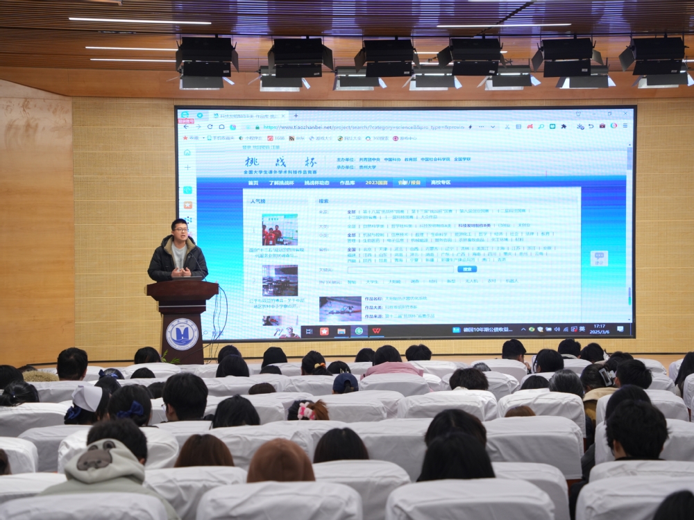 下午,学校匠兴苑学术报告厅内气氛热烈,校党委学工部、校团委召开了“挑战杯”竞赛解读备赛会。会议吸引了所有预报名参赛的师生团队参加,大家济济一堂,共谋备赛大计。