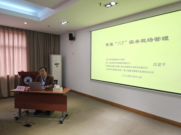 原上海市高校餐饮专业委员会主任沈建平应邀到校作专题培训。在对学校食堂后厨进行突击检查后,他就发现的问题进行说明,并提出了整改意见。培训中,他还详细讲解了食品安全法规、“六T”管理体系的应用以及后厨可视化与标识管理的规范化。