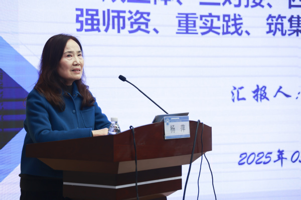 校长贺瑛从学校战略布局出发,以“教育强国,东海何为?”为主题作讲座。她强调,学校积极落实国家教育强国纲要,形成了新的“一体两翼”专业布局,将以“三有”为抓手,以“四维”为引领,以“五同”为核心,以多效为导向,进一步深化产教融合。