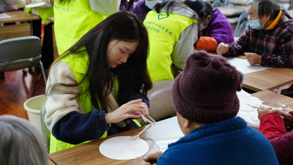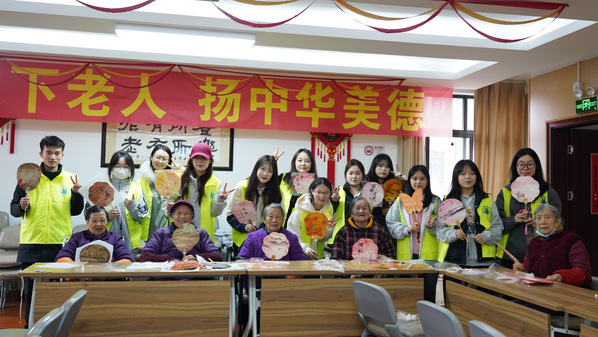 2025年3月14日,上海东海职业技术学院的16名志愿者走进永德敬老院,组织了一场漆扇DIY活动。通过传统技艺体验与代际互动,志愿者们不仅为老人们带去了春日暖意,更让非遗文化在敬老院中焕发新活力。