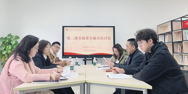 34日,学工部、校团委结合各高校的实施办法,对我校“第二课堂”相关方案的制定与完善进行了充分的论证和讨论,其间还邀请“我在校园”的超星负责人进行了信息化建设的探讨。