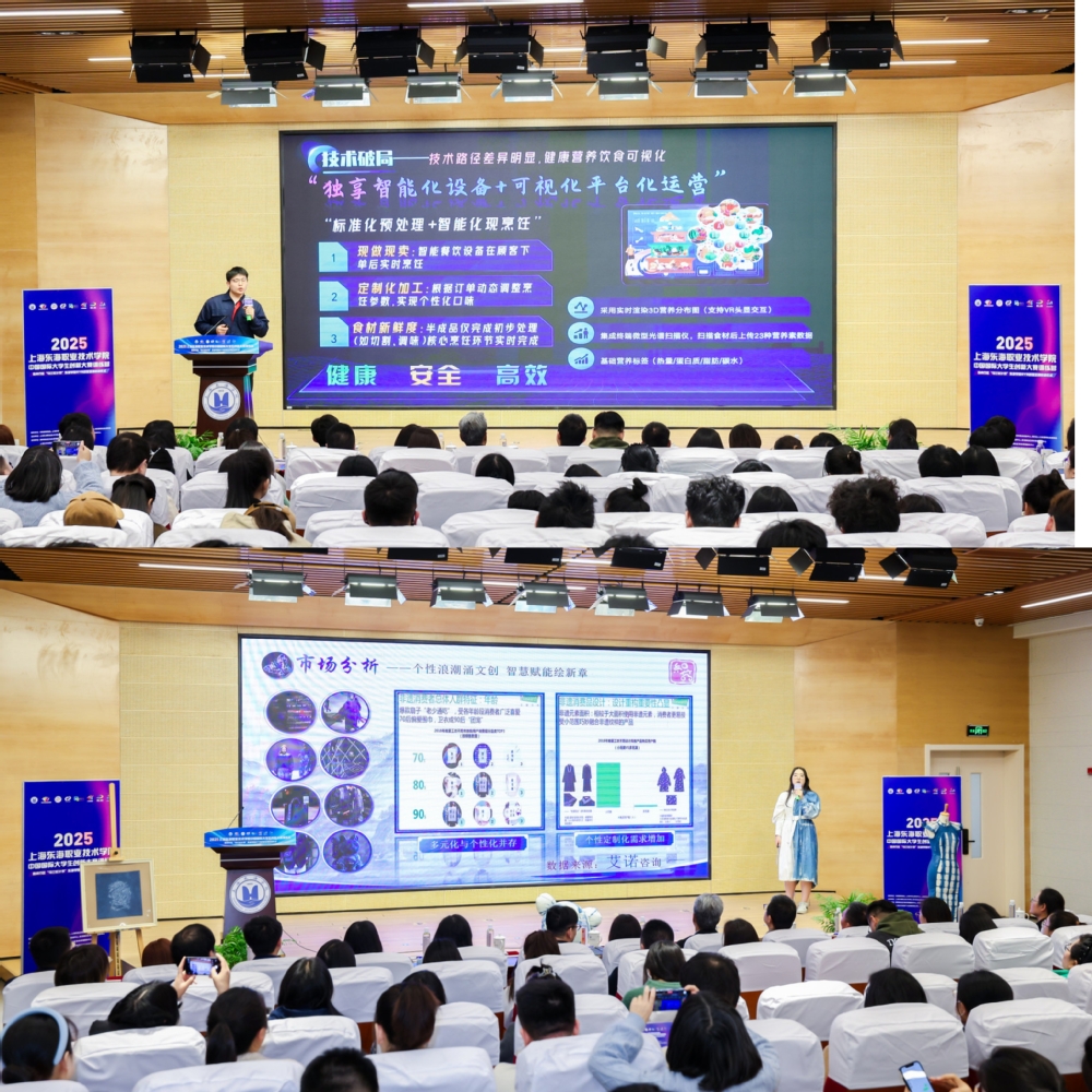 郁萍首先代表学校致欢迎辞。她向长期以来关心和支持学校发展的各级领导和嘉宾表示感谢,对参加大赛训练营的同学们寄予厚望,希望其在2025年中国国际大学生创新大赛中取得优异的成绩,为学校争光添彩。随后,我校2024年中国国际大学生创新大赛两支获奖团队进行了精彩的项目分享。艺术设计学院创业团队《芳香蓝染——非遗文创新质生产力》项目荣获红旅赛道铜奖,展现了非遗文化与现代创新的完美融合。机电学院创业团队《食尚健康——智能健康快餐领航者》项目在职教赛道摘得铜奖,呈现了专业与创业的有机融合。接着,学校正式开启2025年中国国际大学生创新大赛训练营暨闵行区“马兰花计划”GYB创业培训启动仪式,标志着学校在创新创业工作领域的持续深化,结合赛事与培训的双重推动力,为学生搭建了从理论到实践的全链条成长平台。
