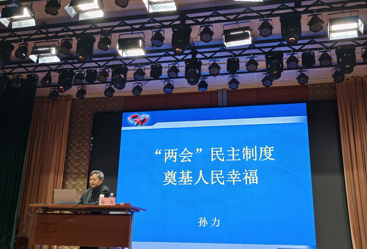 4月2日上午,马克思主义学院“理论讲坛”(第十期)在东海源报告厅拉开帷幕。本期特邀原国防大学政治学院孙力教授,以《“两会”民主制度奠基人民幸福》为题,为师生奉献了一场兼具理论深度与现实温度的思想盛宴。本次讲座紧密围绕全国两会精神,深刻阐释中国特色社会主义民主制度的独特优势,引发全场共鸣。