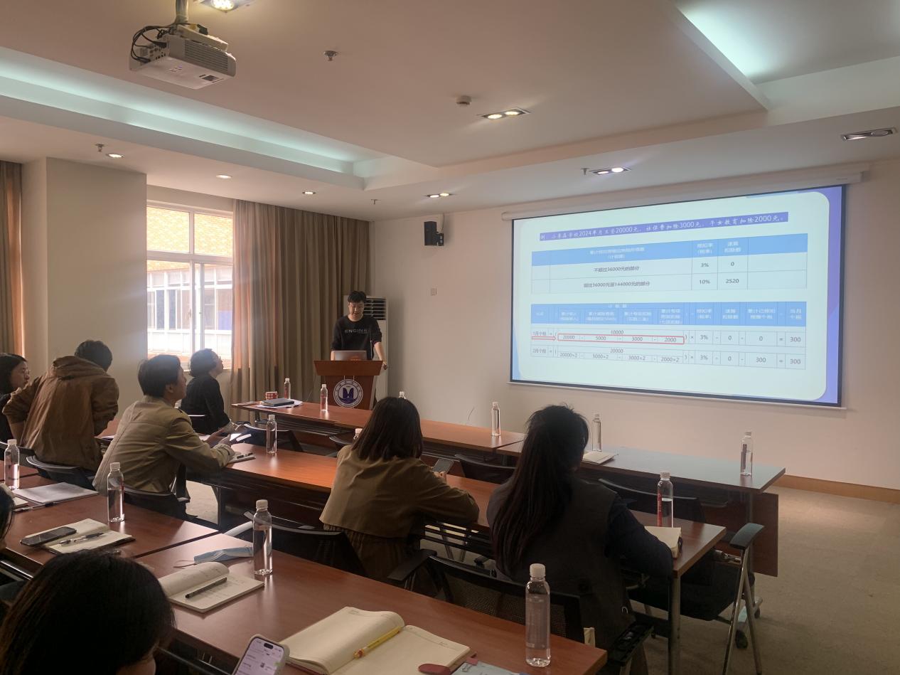 会上,财务处的赵思健、刘悦、胡亚静、王彦枭4位老师分别就个调税专项扣除、新出台的财务制度、餐券管理、财务网站使用、学费收缴管理、退费流程优化以及费用核算等方面进行讲解。他们的讲解细致入微,结合实际案例剖析,使财务专员们对相关财务知识与业务流程有了更为清晰的理解与掌握,为今后的工作提供了有力的专业支持。